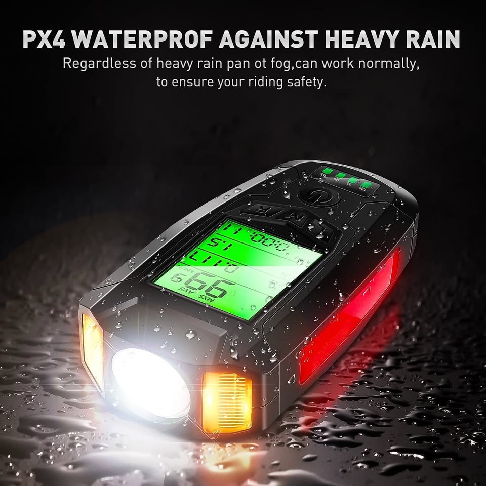 Bicycle Lights with Speedometer Odometer USB Rechargeable Headlight Loud Bell, 5 Lighting Modes